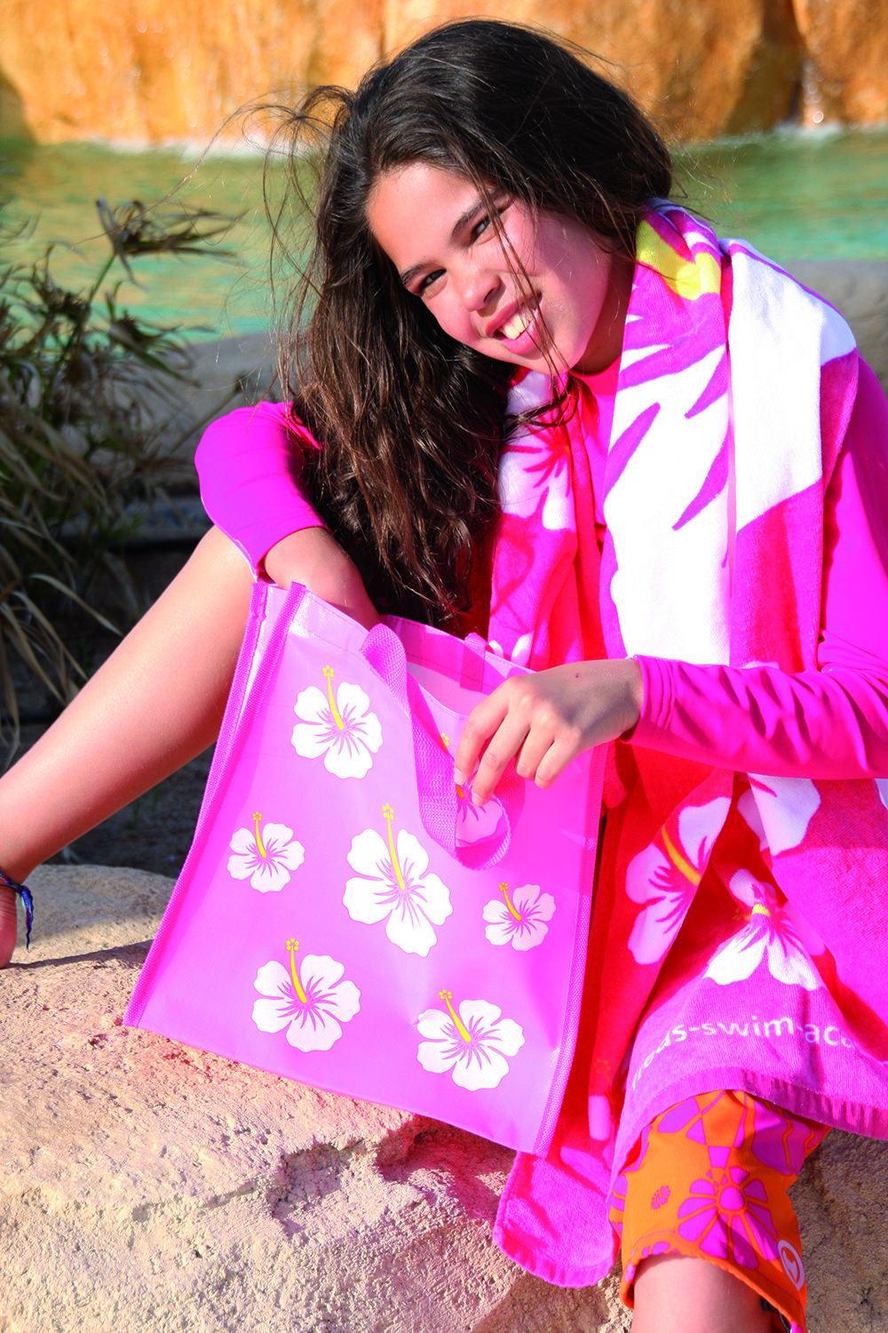 В этой сумке дочка сможет сама хранить и переносить свои пляжные вещи и игрушки, выглядя так же элегантно, как и её мама. Сумка сделана из прочного материала с флисовым покрытием изнутри.