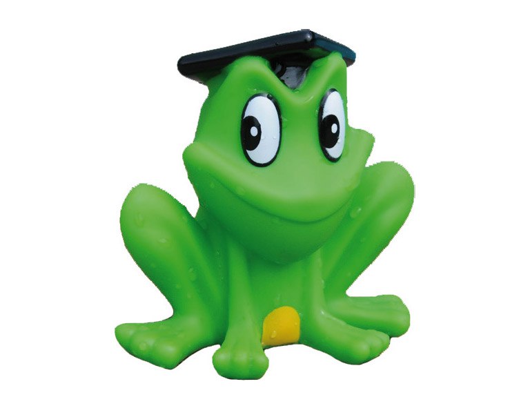 Забавный брызгающий и пищащий лягушонок Фредди со своей щекастой улыбкой и шапочкой-конфедераткой всегда готов купаться. Как раз то, что нужно маленьким пловцам.