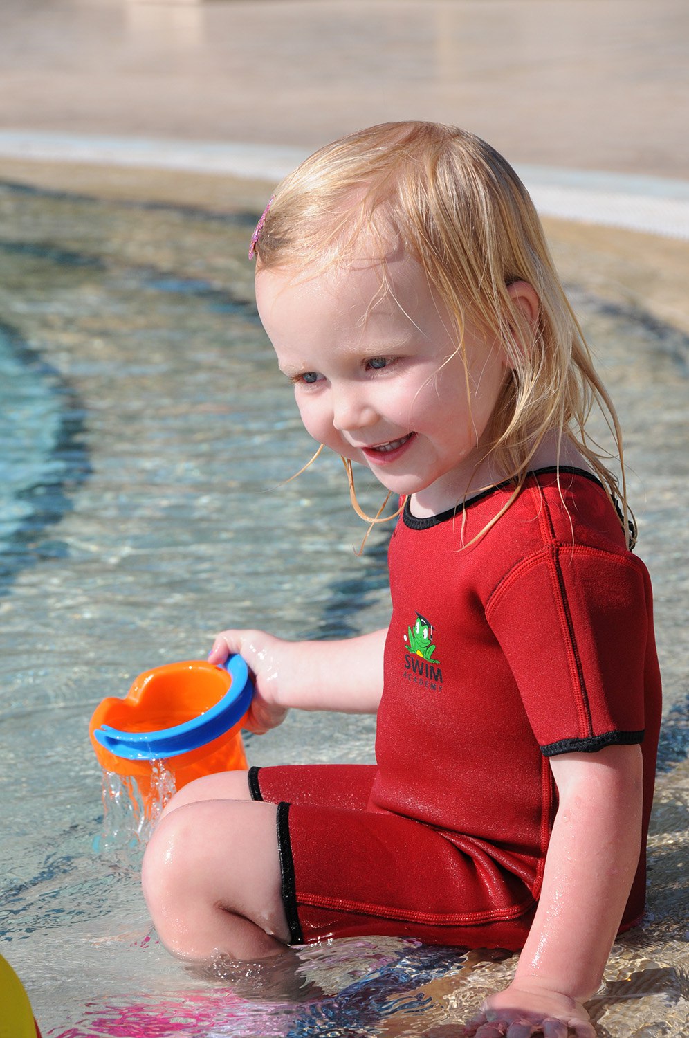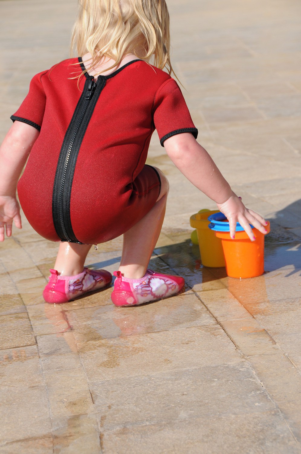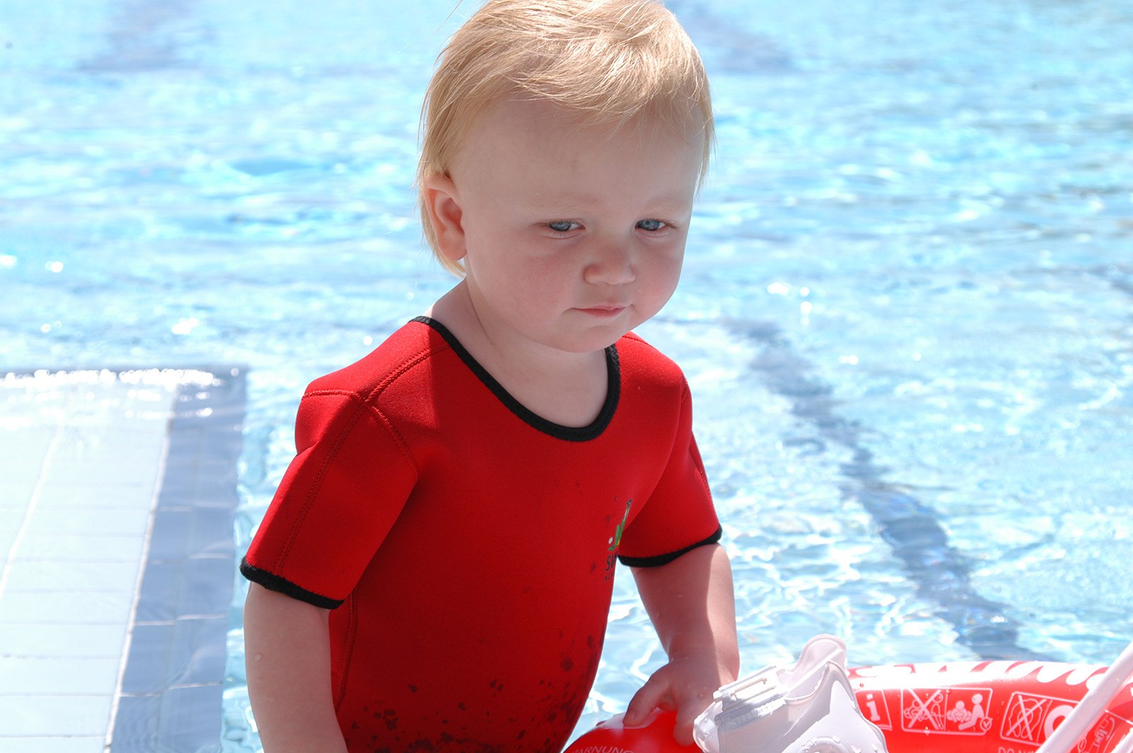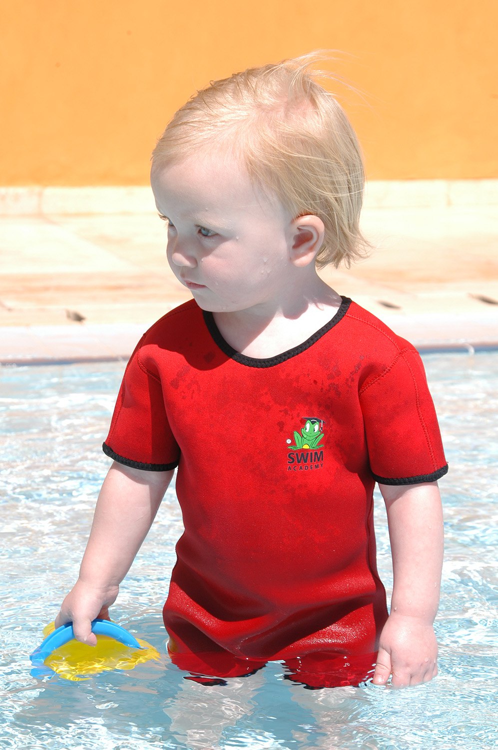 Плавательный комбинезон из неопрена (2.5 мм) для малышей. Удерживает тепло, не сковывает движений. Комбинезон быстро сохнет и защищает от солнца и ветра, а молния на спине позволяет очень быстро и легко его надевать и снимать.