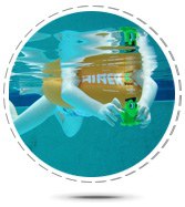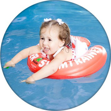 Очень важно создать идеальные условия для первого знакомства ребёнка с большой водой, чтобы она стала ему другом на всю остальную жизнь. Это знакомство должно быть абсолютно безопасным и полным веселья. Для этого расположенная в Германии компания FREDS SWIM ACADEMY GmbH изобрела в своих школах и запатентовала трёхэтапную систему обучения детей плаванию при помощи надувного круга SWIMTRAINER "Classic".