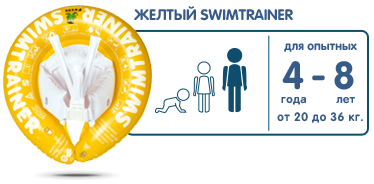Надувные круги SWIMTRAINER "Classic" для обучения плаванию разработаны с учётом возраста и навыков ребёнка в воде. Это означает, что природный рефлекс малышей ("лягушачий рефлекс") можно стимулировать в раннем возрасте, а затем при помощи игры и различных упражнений постепенно знакомить их с правильным стилем плавания.