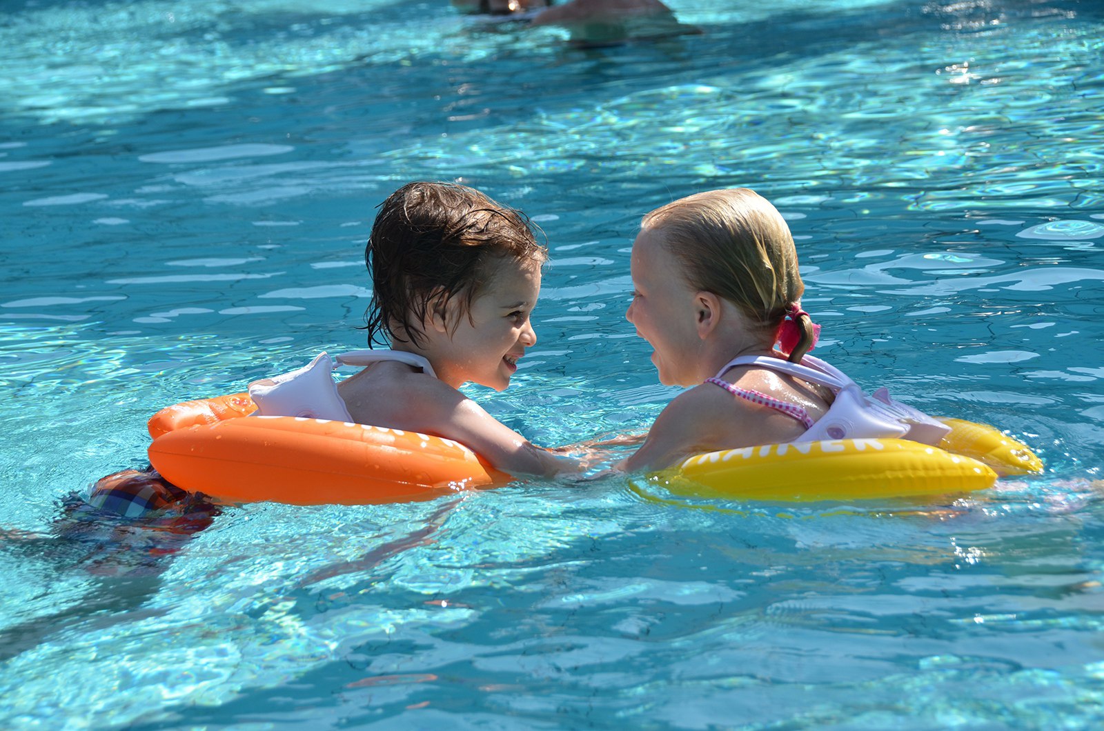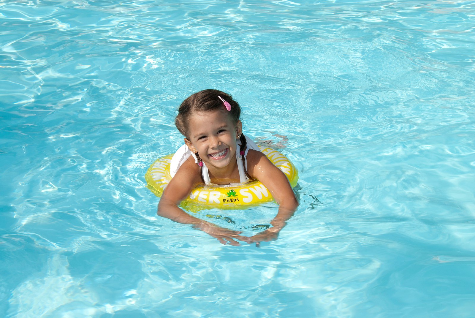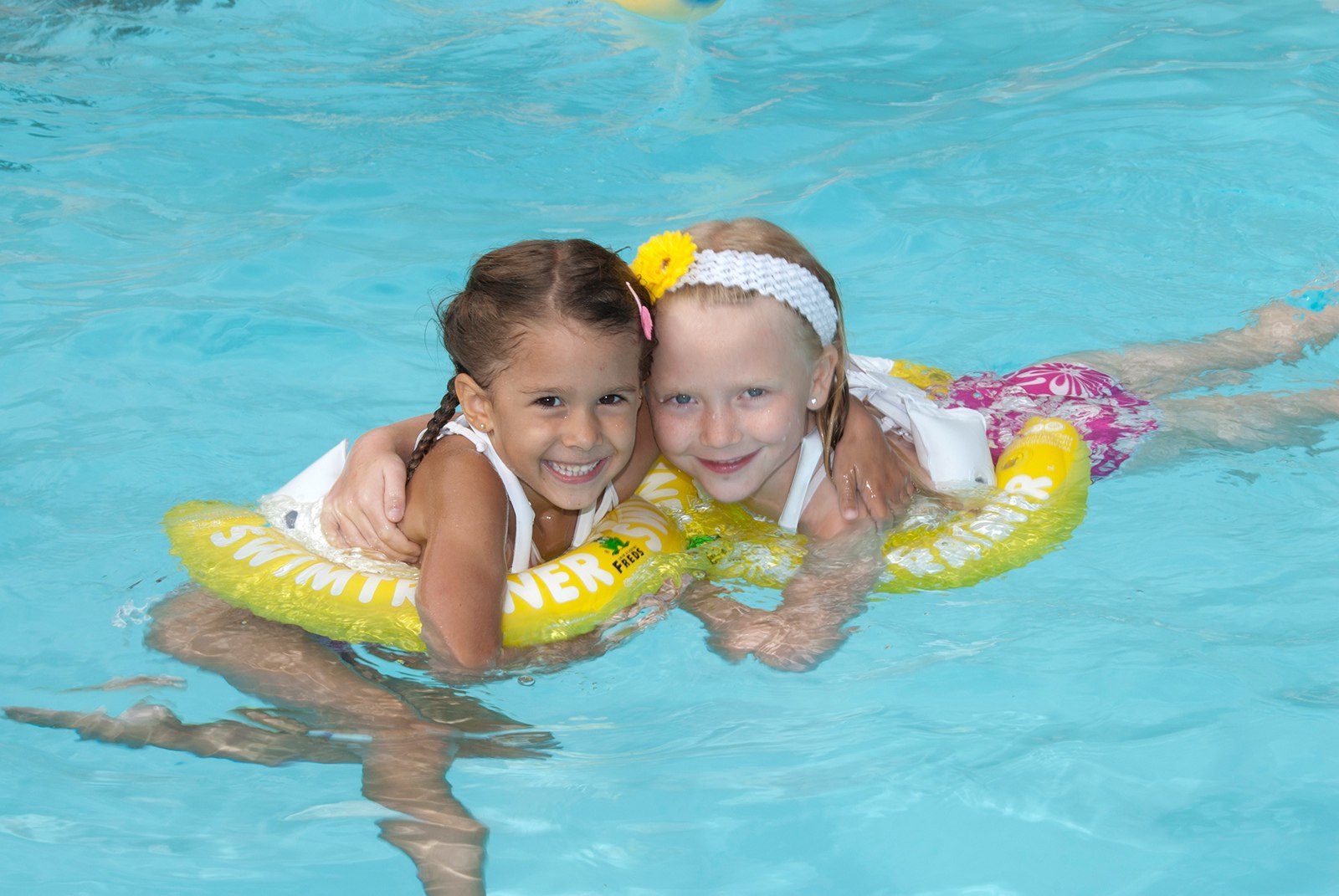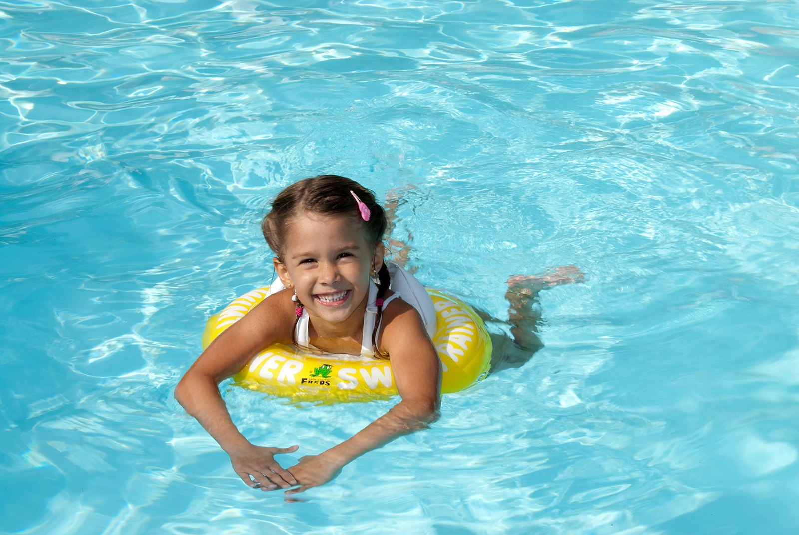 Очень важно создать идеальные условия для первого знакомства ребёнка с большой водой, чтобы она стала ему другом на всю остальную жизнь. Это знакомство должно быть абсолютно безопасным и полным веселья. Для этого расположенная в Германии компания FREDS SWIM ACADEMY GmbH изобрела в своих школах и запатентовала трёхэтапную систему обучения детей плаванию при помощи надувного круга SWIMTRAINER "Classic".
